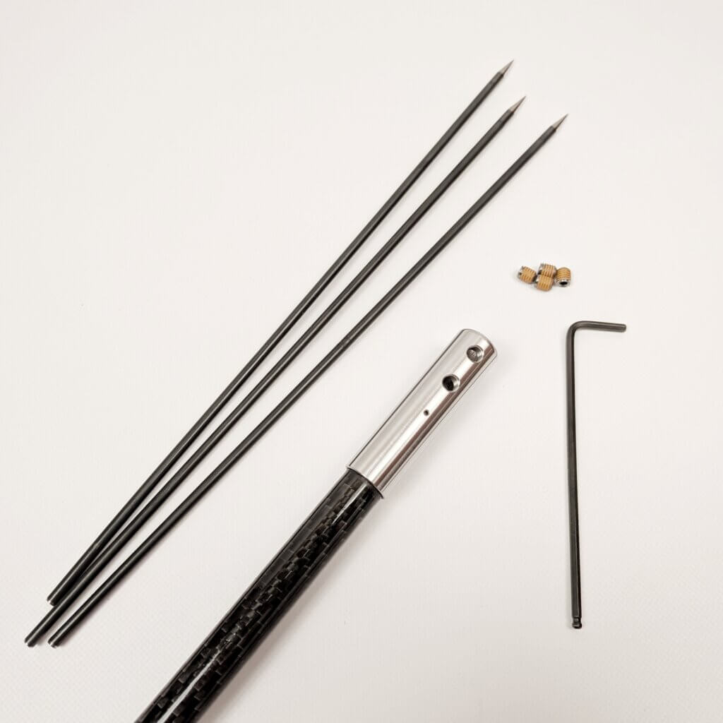 作ったカーボンシャフトが1mのため、1本あたりの長さをこれより長くすることはできません(1.5mの二本継など)が、短くカットして製作することは可能です。 川で使うことを考えると、これより短くしてほしいというご要望もあると思いますので。