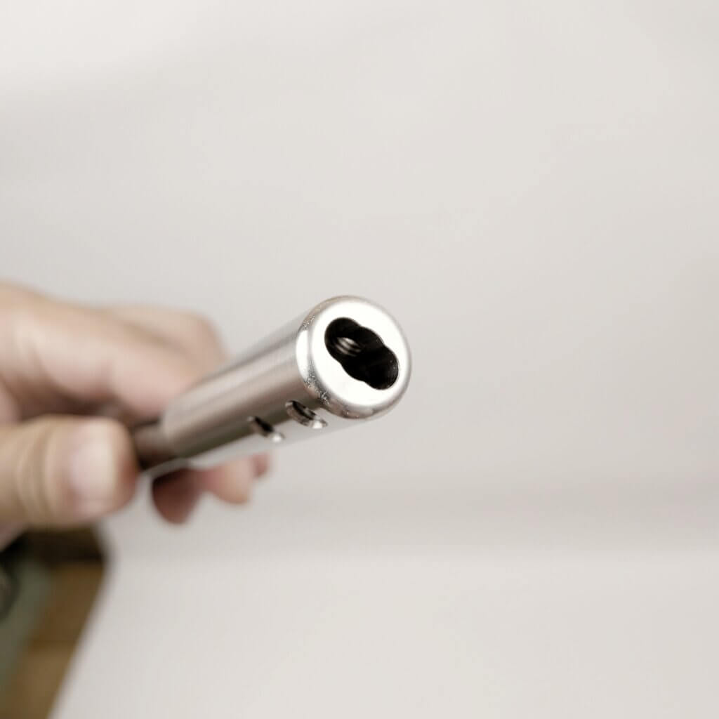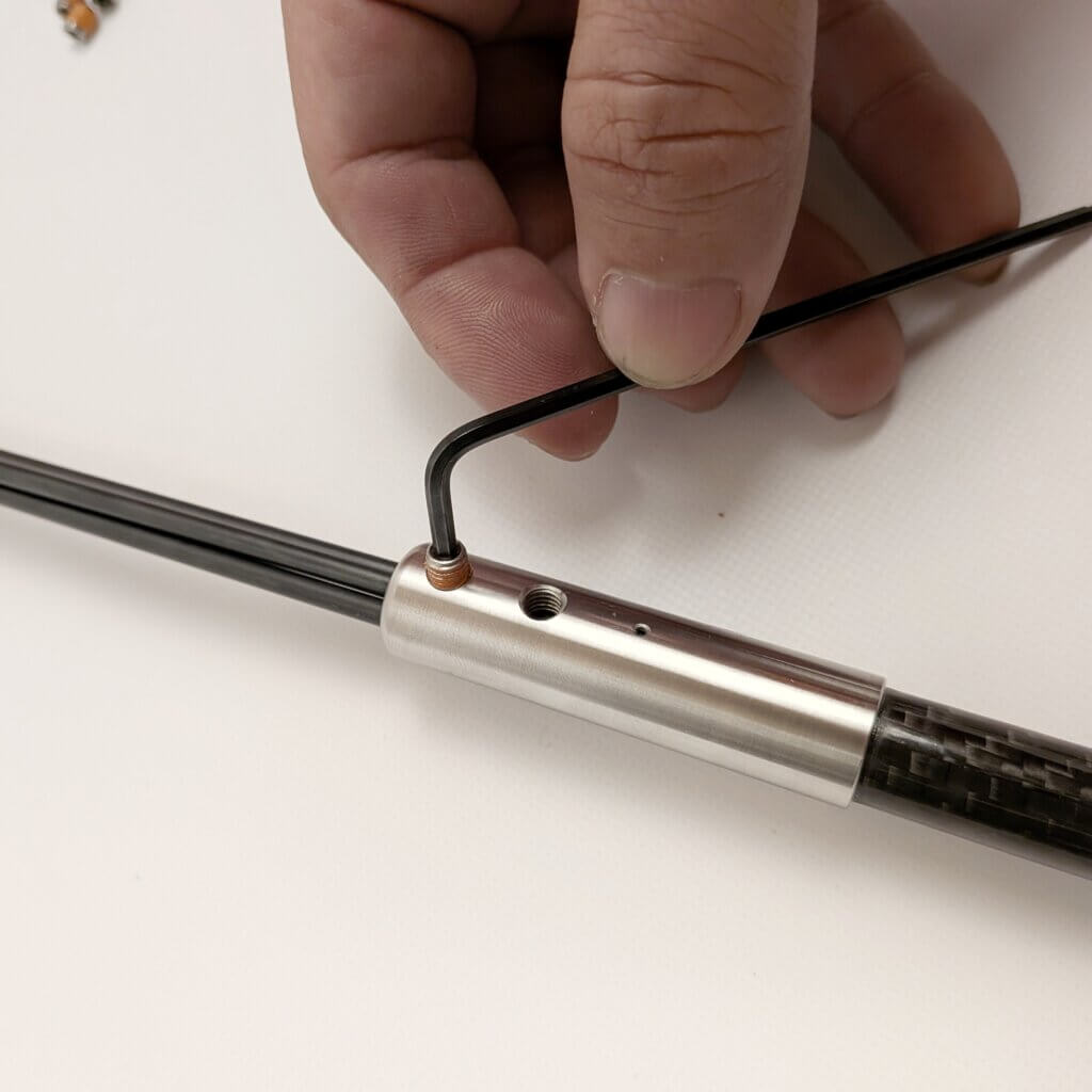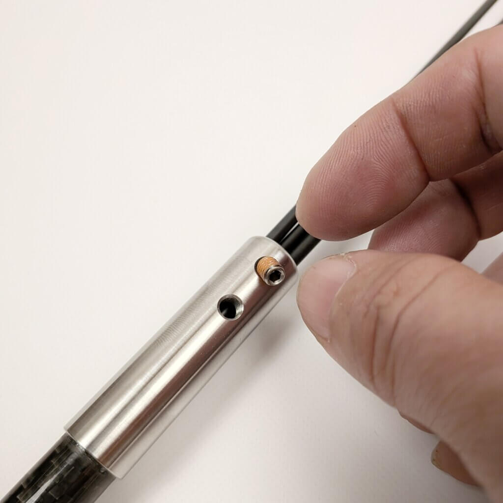 2. 付属のイモネジを、先端金具のネジ穴に入れる
