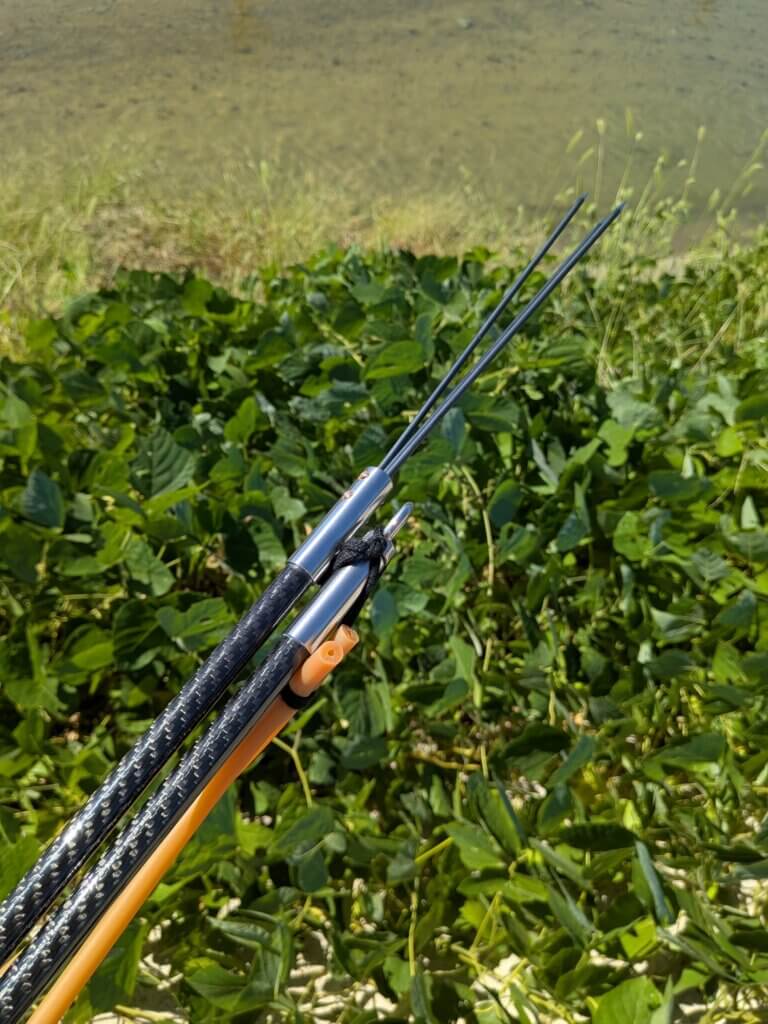 流れの早い川でも出来るだけ水の抵抗を受けないよう、取り回しと初速にスペック全振りし、限界までシェイプして作った渾身の川用手銛。